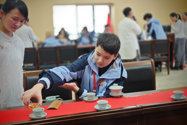 下午,随着一场庄重而热烈的开营仪式圆满落幕,营员们满怀期待地迎来了中国传统茶艺的体验环节。