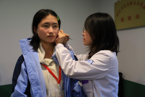 营员们走进针灸课堂,见证了针灸的神奇疗效,并在专业指导下,勇敢地尝试了人体模型上的穴位定位,体验了一把“小小中医师”。