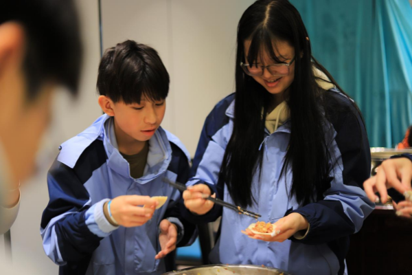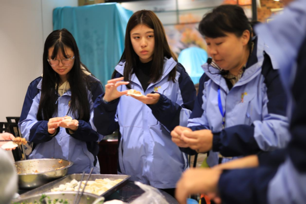 晚上,营员们围坐一堂,体验了包饺子的乐趣。在欢声笑语中,他们学会了如何调馅、捏合,一个个形态各异的饺子在他们的手中诞生。这次活动让营员们感受到了中国传统节日的温馨与欢乐。