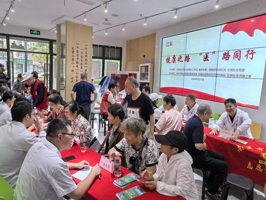 9月29日上午,秦淮区红花街道抖阴下載 联合南京市第一医院外科党总支、区政协红悦社区民生工作站共在红悦社区“侨胞之家”开展“健康之路,‘医’路同行——国庆义诊”活动。