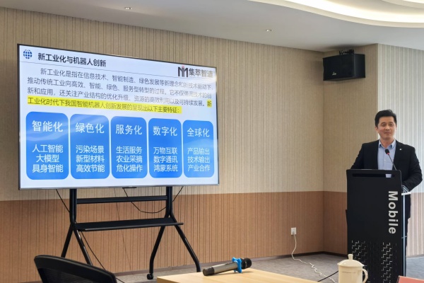 活动中,江苏集萃智能制造技术研究所有限公司董事长骆敏舟就《新型工业化时代智能机器人发展的挑战与机遇》进行主题分享。会议分析了当前智能制造产业发展及企业出海的形势,并就《江北新区关于企业出海相关培育措施》进行了宣导。与会企业代表结合自身产业,围绕智能制造产业产品技术、创新应用、未来发展等方面进行交流探讨。